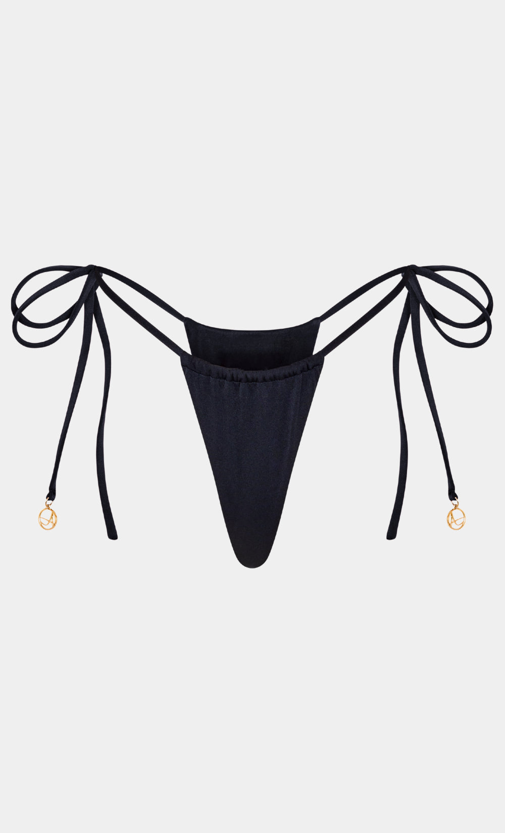 The Kim Bottom is the ultimate tanning essential, designed to minimise tan lines without compromising on elegance. Featuring adjustable side ties and sliding panels, it offers fully customisable coverage—whether you prefer a daring silhouette or a more refined fit. Cut from premium Italian fabric and finished with signature gold-plated logo charms, it’s a timeless piece that blends versatility with understated luxury.