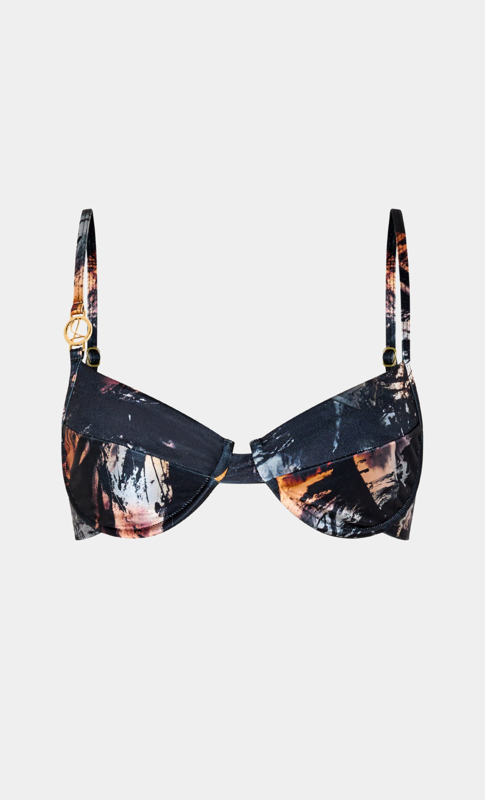 The Gia Top is the ultimate push-up bikini top designed to sculpt, lift, and enhance. With its sleek, minimalistic silhouette and underwire support, it delivers a flawless push-up effect while offering all-day comfort. Crafted from our newest luxurious laminated Italian fabric, it showcases a super-unique high-shine finish and comes to life in an exclusive Alessi custom print. Finished with our signature gold-plated charm, it adds the perfect touch of elegance and luxury to your beachside look.