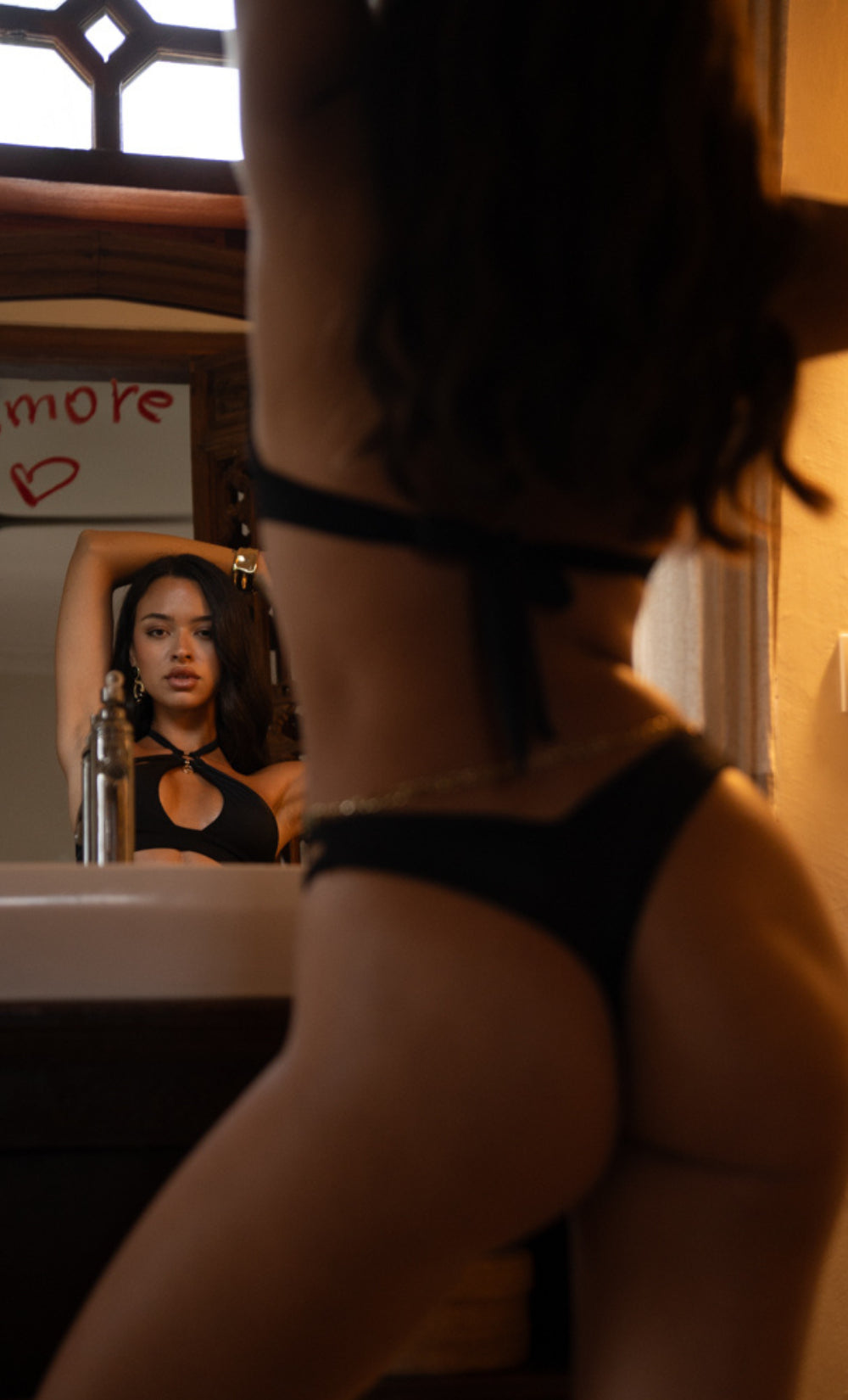 Designed to sculpt and flatter, the Flora top features a modern halter neckline with delicate cut-out detailing that enhances and frames the décolletage. The luxe shimmer finish catches the light beautifully, creating a subtle glow against the skin. Finished with our gold-plated signature charms, this piece blends bold femininity with refined elegance. Crafted from premium stretch fabric for a smooth, supportive fit, the Flora Top is perfect for statement beach days and elevated poolside moments.