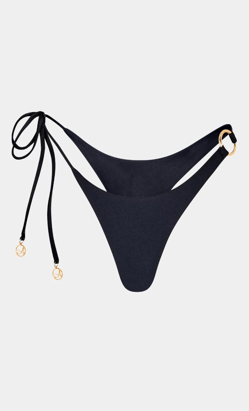 The Kylie Bottom features a low-rise design with a minimalist and elegant silhouette. On the right side, the signature Alessi ring serves as a focal point, adding a unique and sophisticated touch. The left side is decorated with thin ties adorned with small Alessi pendants, providing an extra element of luxury. Versatile and stylish, the Kylie Bottom pairs perfectly with all other Alessi designs, making it ideal for a chic and refined beach look.