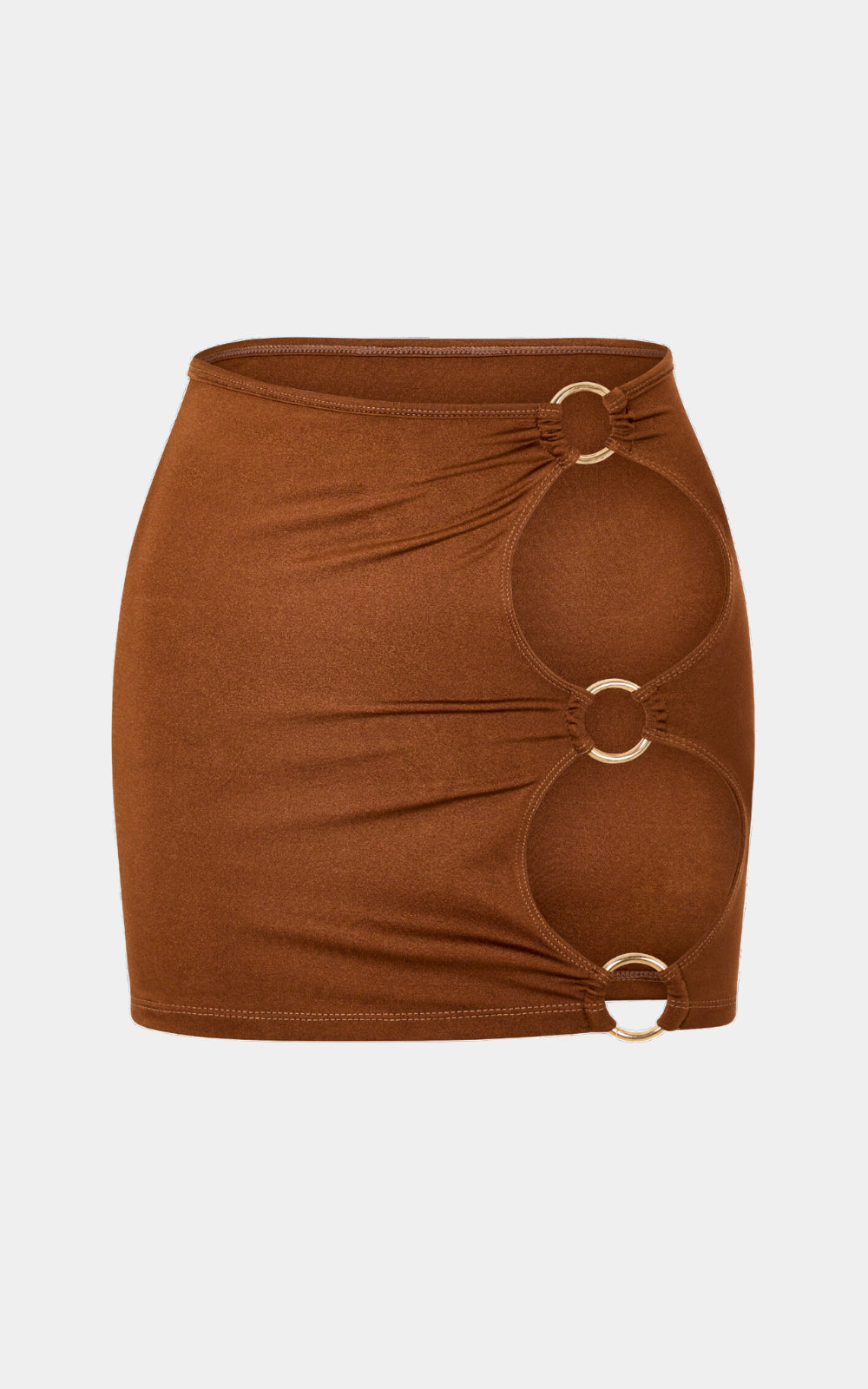 The Luna Skirt in rum is a resort-wear must-have, combining effortless elegance with versatility. Made from the finest Italian Lycra, it boasts a silky-smooth feel and a luminous shine. A gold hoop detail on one side adds a sophisticated touch, while the adjustable coverage ensures a perfect fit. Ideal for layering over your favorite Alessi Swim bikinis, this skirt effortlessly takes you from lounging poolside to a stylish evening out. Pair it with the Sole Bodysuit to create the illusion of a sleek, chic dress for a polished resort look.