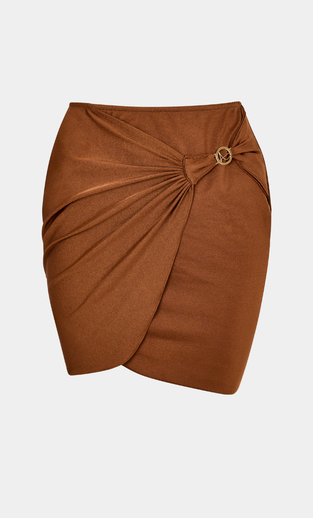 The rose skirt is a sophisticated and versatile piece, crafted from premium Italian fabrics for a luxurious feel and flawless fit. Featuring an elegant wrap design with delicate ruching and a gold-tone ring detail, it effortlessly enhances your silhouette. Perfect for day-to-night styling, this skirt combines timeless elegance with modern craftsmanship.